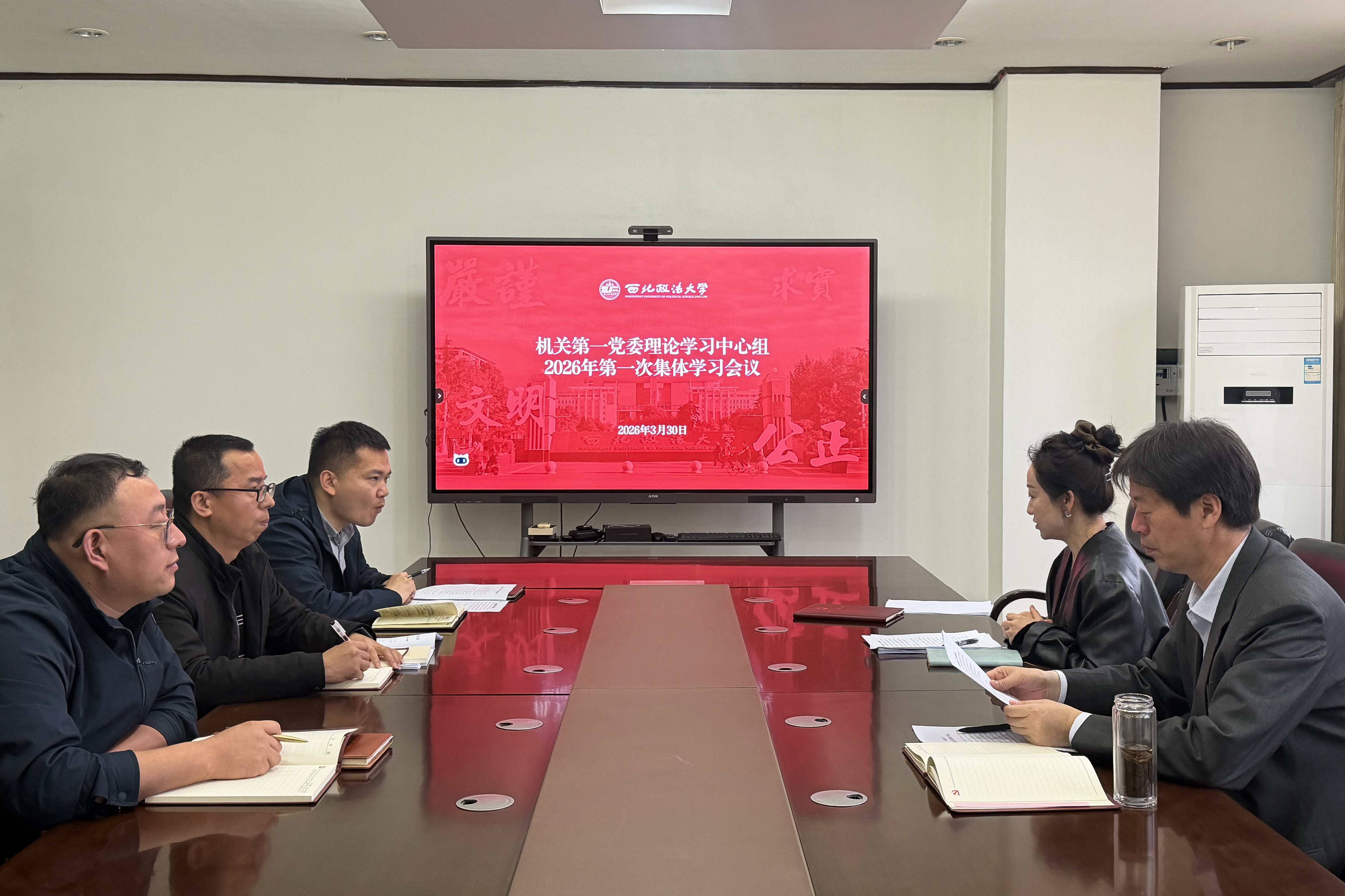 3月30日晚,机关第一党委在校务楼第一会议室召开理论学习中心组学习会,全体党委委员参加会议。
